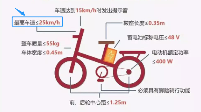 2019年4月15日,电动自行车新强制性国家标准《电动自行车安全技术规范》正式实施。根据规定,电动自行车最高时速不得超过25公里。