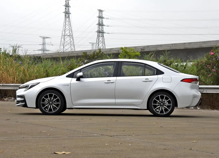 车身侧面方面,新款雷凌依然是标准的三厢车设计,车身腰线为上提式,配合前后微微宽出车体的侧翼子板和双五辐式轮圈,具有一定的运动气质。车尾两侧尾灯通过亮黑色的装饰条相连接,形成贯穿式设计,拉伸了尾部的视觉宽度;同时,车尾后包围采用双色分层式结构,增添了立体感,后包围处还增加尾部扩散器装饰面板。