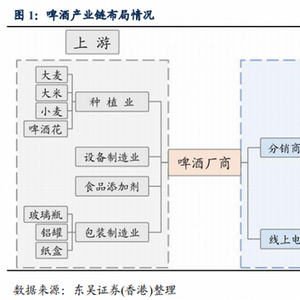 上游是原材料供应商,包括大麦、小麦、酒花、啤酒瓶、铝罐等;
