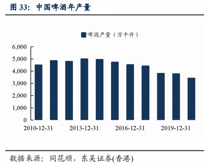 在2013年,中国啤酒消费量达到峰值后,在后来7年内处于增量洼地