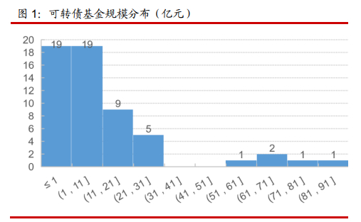 目前单只可转债基金的规模仍偏小。截至2022年末,57只可转债基金规模的中位数是2.48亿元,规模突破10亿的共有21只,多数基金的规模处于10亿以下。其中规模最大的五只可转债基金分别是浙商丰利增强(82.37亿元)、光大添益A(74.68亿元)、汇添富可转债A(66.66亿元)、鹏华可转债A(64.48亿元)和博时信用债券A(57.15亿元)。