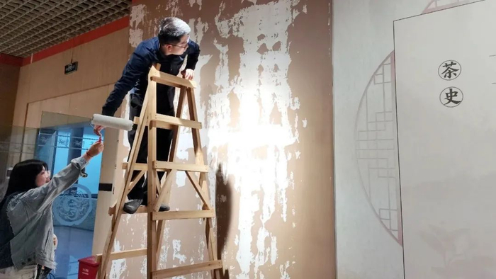 在紧张布展的展厅中记者看到,现场布置有多个复原场景,观众可以体验传统制茶工艺流程,也可以欣赏到幽静素雅的茶室空间,更可以走入“画”中,形成画中饮茶赏景的情景,留影成为“画中品茶人”。
