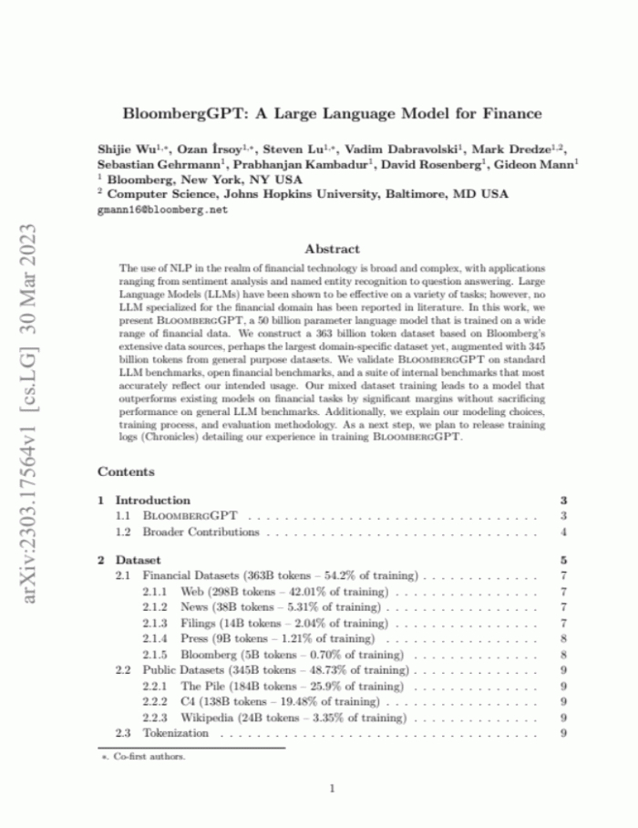 3月的最后一天,彭博新闻社发布了专门为金融领域打造的大型语言模型(LLM)——BloombergGPT,引发金融圈“地震”。