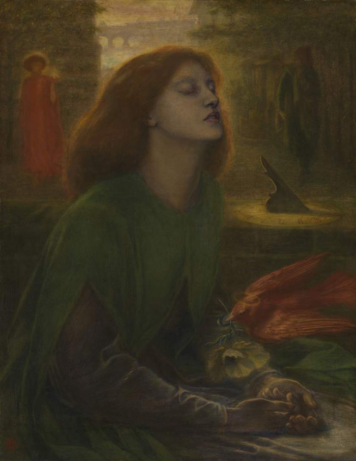 但丁·加布里埃尔·罗塞蒂,《贝娅塔·贝娅特丽克丝》,1863年,画中模特为西达尔,作品集中体现了罗塞蒂 对描绘美丽女性的热衷