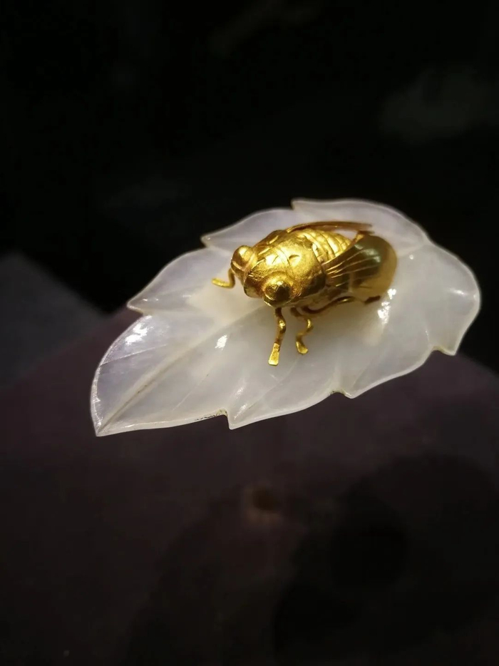 也是目前国内出土的唯一一件金蝉玉叶