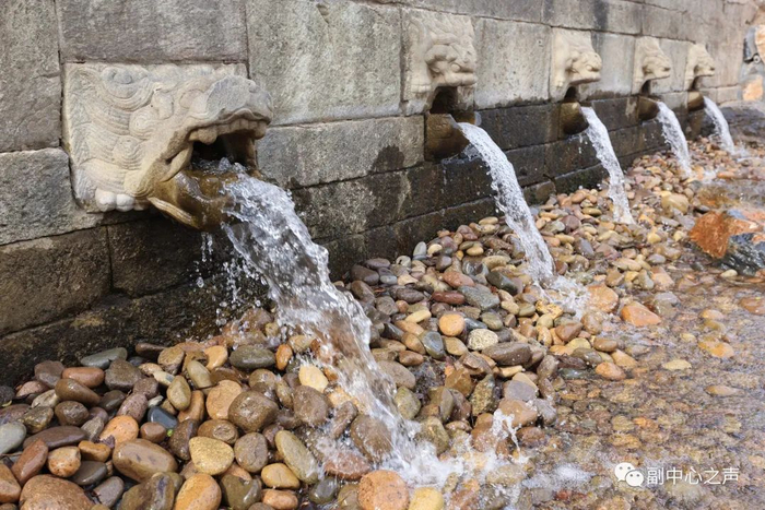 阳光照射下,汩汩清泉不断从龙首喷出,如玉石璀璨。据明《隆庆昌平州志》记载,“按州东南五里有龙泉山,上建都龙王庙,山之东麓,泉涌山下,石窦潆洄,如玉喷吐,清冽可爱,州之游观者无间四时”,史上此景有“龙泉喷玉”之称,清康熙年间改为“龙泉漱玉”,为明清“燕平八景”之一。如今,经过修缮,“龙泉漱玉”得以重现。