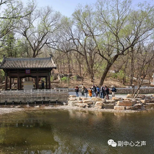 从都龙王庙南侧山道向下来到九龙池遗址。这里的一池碧波,就是元代大运河最北端的水源地——白浮泉。