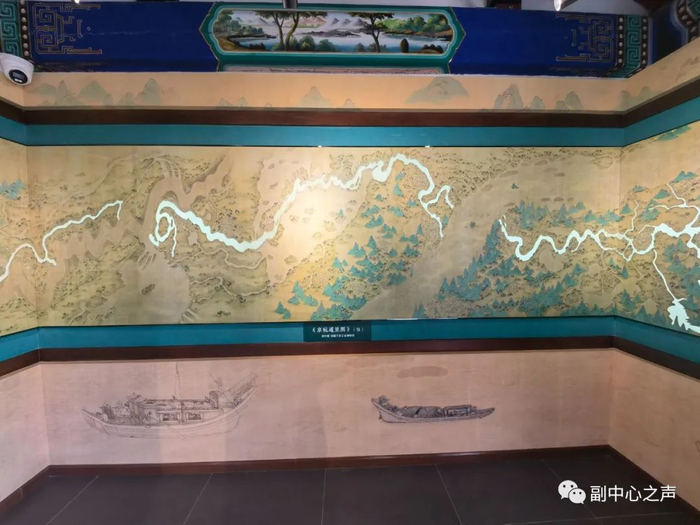 如今,龙泉禅寺变身“大运河源头历史文化”展厅。走进序厅,映入眼帘的是清代《京杭道里图》的复制版,虽是复制版,但相较原图,却多了几处“彩蛋”。讲解员指着其中白浮泉的位置说:“因为白浮泉在元朝灭亡后就不再作为运河水源了,所以原图上并未体现白浮泉具体位置。而我们向相关专家请教并参照文献,还原了大运河在元朝最北端的水源——白浮泉,以及白浮瓮山河和通惠河两条水路图。”画面中,可见现在的昆明湖、北京城与通州城,更加直观地诠释了白浮引水的重要作用。这幅图采用地图与绘画相结合的方式,生动形象地反映出当时大运河的山水风光、城市桥梁、江河船楫,并点缀纤夫拉纤、路人行走等场景细节,画面栩栩如生。
