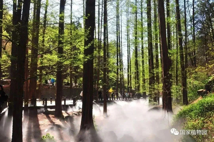 为了促进水杉生长,植物园设置了喷雾装置