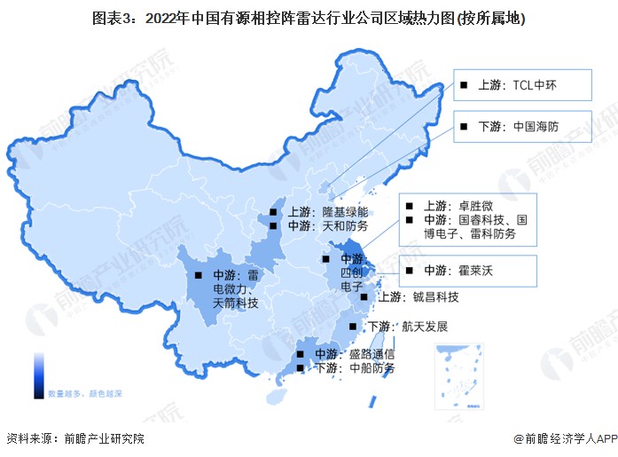从整体区域布局来看,相控阵雷达行业参与者出民营企业外,还主要包括军工集团及其下属科研院所、总体单位等,其地域分布与国家军事战略布局相关,具有一定的区域特征,因此民营企业的布局也与之相近,呈现出特定的区域性。