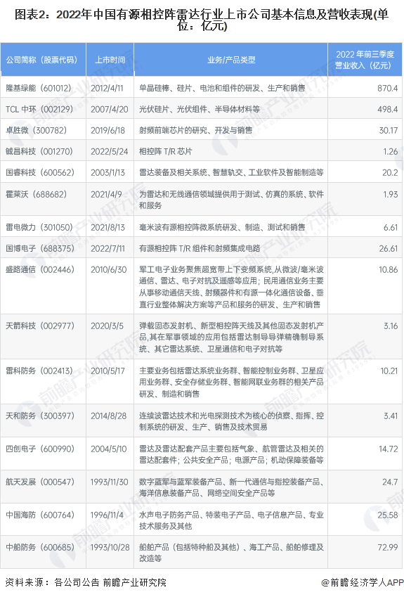 【最全】2023年有源相控阵雷达行业上市公司全方位对比(附业务布局汇总、业绩对比、业务规划等)