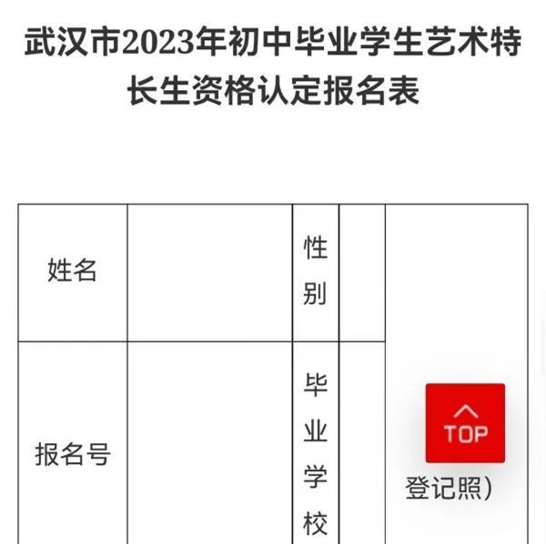凡自愿报名且符合条件的考生填写并打印《武汉市2023年初中毕业学生艺术特长生报名表》,在本校或辖区体卫艺站报名。