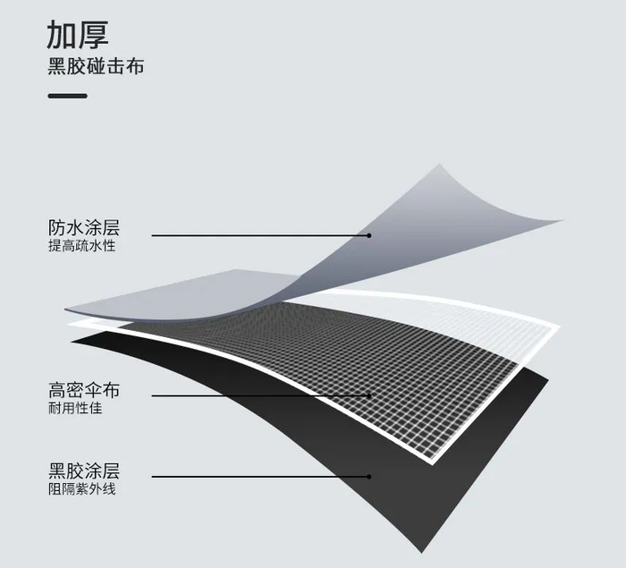 底层是黑胶涂层,阻隔紫外线,防止被晒伤