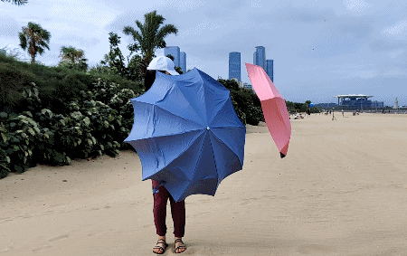 或是带伞了却因为伞的质量不够顶被吹散架