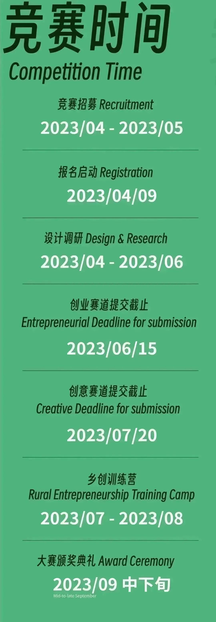 This competition aims to take the opportunity to gather global youth here and explore the countryside. Two tracks for entrepreneurship and creativity are respectively set for participants to carry out innovative, enterpreurial and creative design on the basis of rural idle space, industrial format, cultural and tourism brands, rural cultural and creative products and so on, so as to empower the countryside with digitization, light up the countryside with art, promote the growth of rural culture and vitalize the countryside.