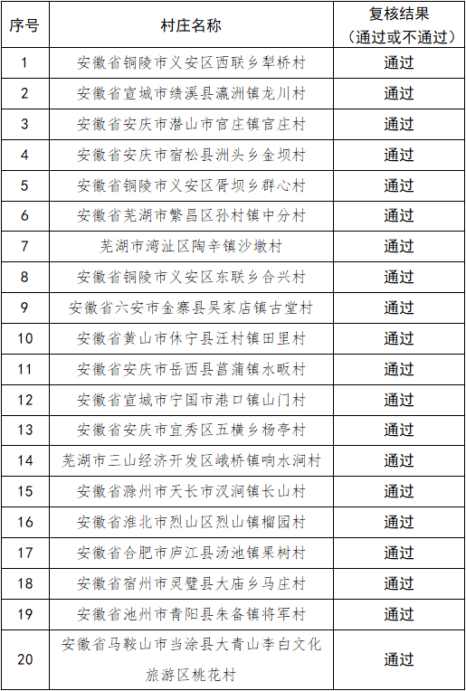 根据农业农村部办公厅、住房和城乡建设部办公厅《关于开展美丽宜居村庄创建示范工作的通知》(农办社〔2022〕11号)和《关于开展2023年美丽宜居村庄申报认定工作的通知》(农办社〔2023〕1号)要求,依照《安徽省农业农村厅 安徽省住房和城乡建设厅关于开展美丽宜居村庄申报认定工作的通知》(皖农社函〔2023〕226号),在各地自主申报的基础上,省农业农村厅会同省住房和城乡建设厅经材料初审和专家评审,拟推荐金寨县花石乡大湾村等12个村(见附件1)申报2023年第一批国家级美丽宜居村庄,2018年以前认定的铜陵市义安区西联乡犁桥村(见附件2)等23个美丽宜居村庄通过复核,认定肥东县长临河镇四顶社区等365个村为省级美丽宜居村庄(见附件3),现予以公示。