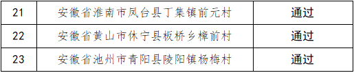潜山市黄铺镇黄铺村、桐城市大关镇小关村、怀宁县公岭镇三铺村、岳西县白帽镇土桥村、太湖县江塘乡大塘村、望江县漳湖镇回民村、宿松县柳坪乡邱山村、桐城市范岗镇高黄村、怀宁县高河镇查湾村、潜山市痘姆乡仙驾村、岳西县河图镇南河村、、太湖县刘畈乡刘畈村、望江县太慈镇桃岭村、宿松县北浴乡滑石村、迎江区长风乡将军村、大观区海口镇保婴村、宜秀区白泽湖乡黄石村