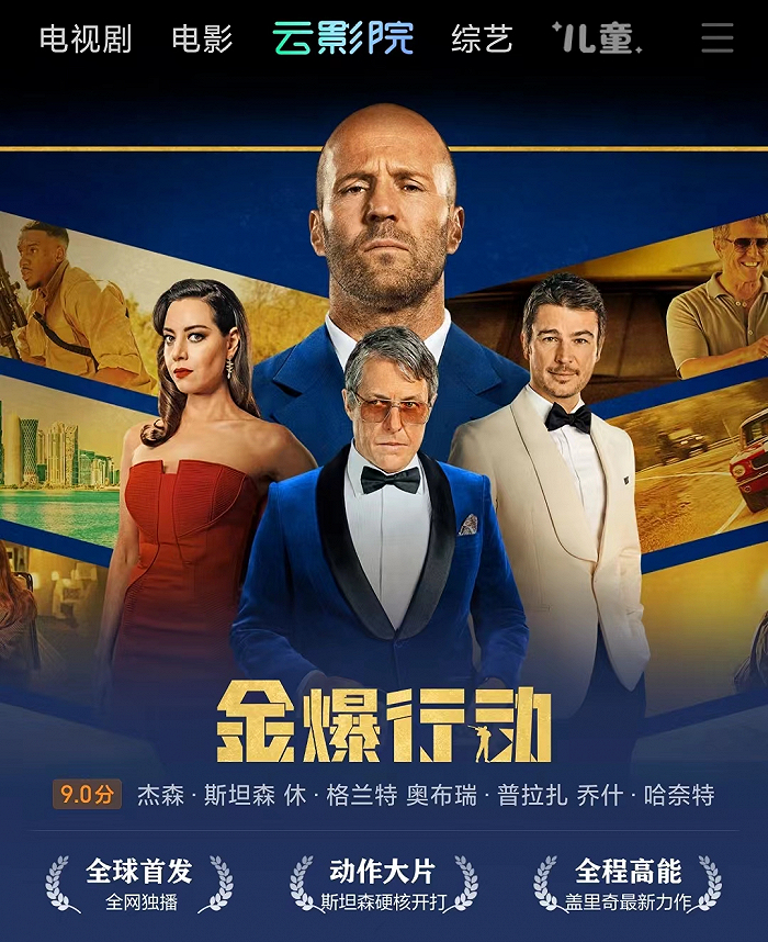需要说明的是,“云影院首映”分为点播分账期(35天)+会员分账期(180天)两个阶段,整个付费周期高达215天。《金爆行动》目前还处于点播期初期,票房表现惊喜超预期,后期票房依然强劲。从以往云影院首映的影片数据来看,会员期票房应该是点播期票房的1-2倍。不出意外的话,《金爆行动》的最终票房应该不少于3000万,甚至可能创下云影院票房新纪录。