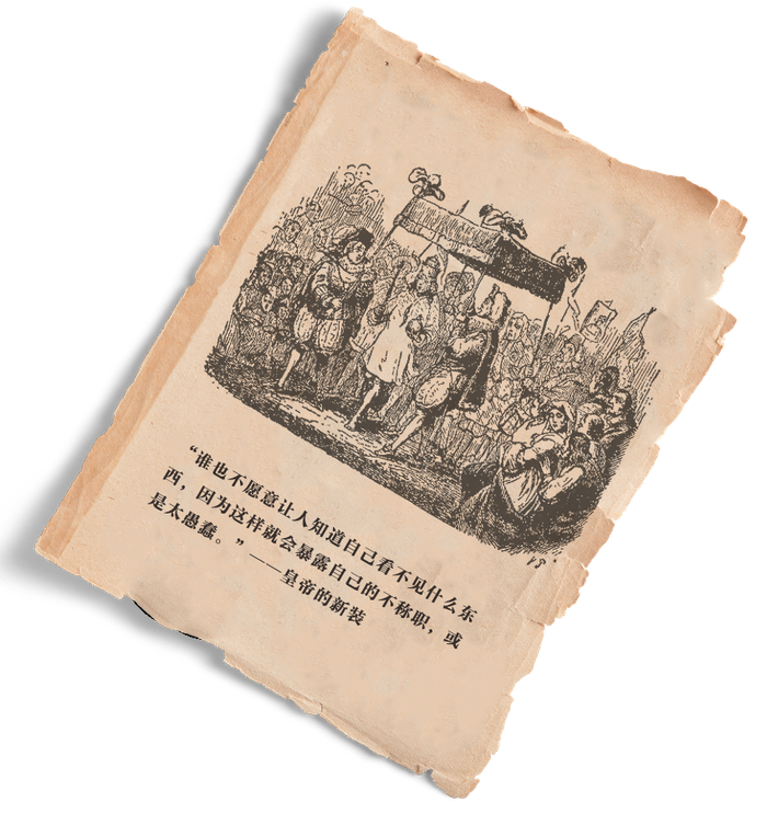 皇帝有点发抖,因为他似乎觉得老百姓所讲的话是对的。不过他自己心里却这样想:“我必须把这游行大典举行完毕。”因此他摆出一副更骄傲的神气,他的内臣们跟在他后面走,手中托着一个并不存在的后裾。