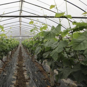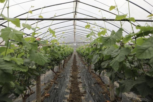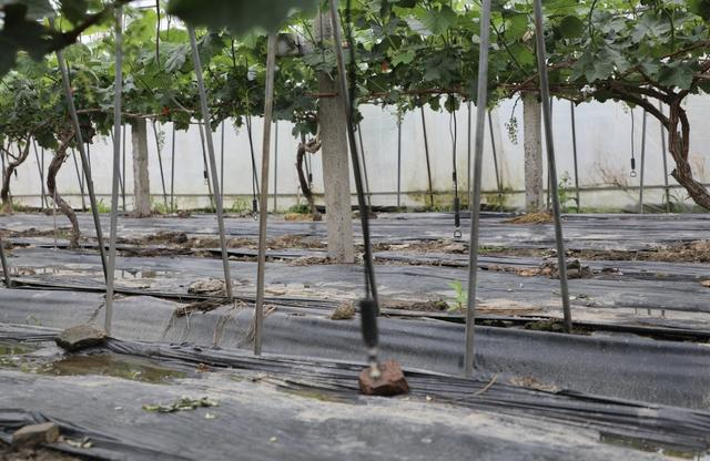 据悉,今年基地共种植了14余亩葡萄,近30个大棚,配备了完整的滴灌系统。与此同时,棚室温度管理也是花期至关重要的一步,当前葡萄棚内控制的温度在28°C左右,“大棚内一共搭了三层膜,葡萄藤刚发芽的时候为了防止温度过高晒坏,温度可能要低一点,保持在25°C左右,”浦在良说,“地膜下面还配置了水管,温度过高就喷一点水降低温度。目前大棚内有晴王、妮娜皇后等多个品种,其中最早一批葡萄预计7月初就可以上市”。