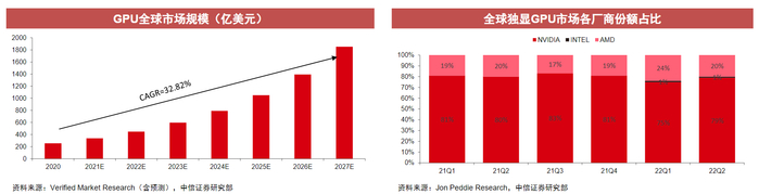 从长远来看,未来大模型的研发和部署是必然趋势,而每个大模型训练和部署的背后,都有几万个GPU芯片在支持。因此,通用GPU市场需求将会迎来爆发式增长。据VerifiedMarketResearch数据,2020年中国大陆的独立GPU市场规模为47.39亿美元,预计2027年将超过345.57亿美元。