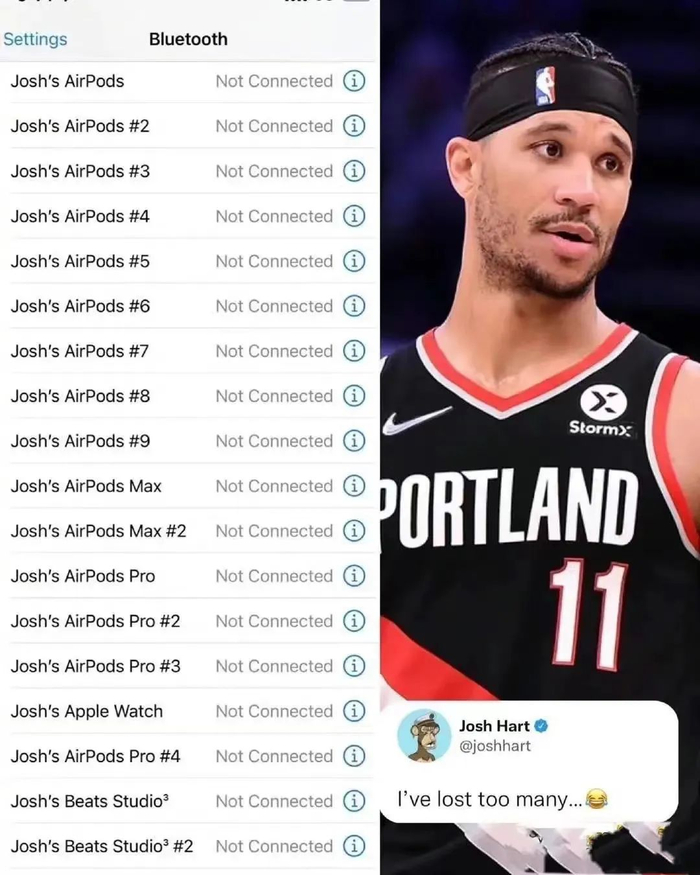 NBA篮球巨星约什•哈特就在自己的ins晒出自己