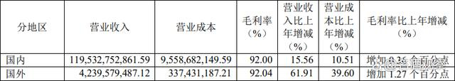 年报显示,2022年贵州茅台国内销售收入1195.33亿元,比上年增长了15.56%。国外收入42.40亿元,同比增长61.91%。42.4亿的收入也基本等于一个省酒龙头的年销售额了。