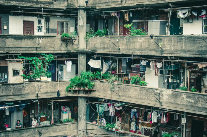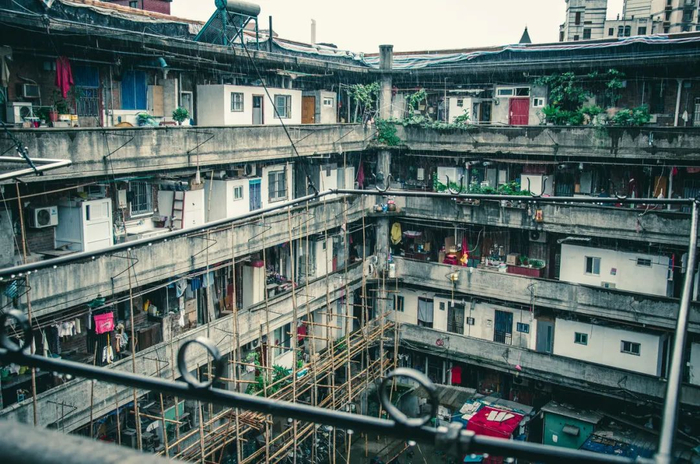 它被称为“猪笼城寨”,每层楼都是被长长的走廊连接起来,楼道的内侧是一个又一个的房间。