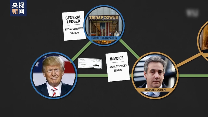 该报纸首席执行官佩克帮其联系上特朗普当时的律师科恩。最终,科恩支付给丹尼尔斯13万美元的封口费。后来,科恩通过每月提交法律服务发票将这笔钱报销,这些费用则由特朗普通过特朗普集团支付。纽约检方认为,这些付款记录正是虚假商业记录。