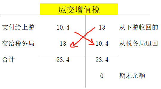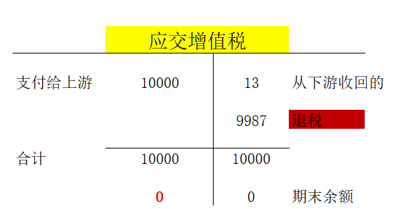 最终实现只有最终消费者按最终销售价格交税的目的,消费者最终给了13的税给超市,这13的税国家不会退给消费者了。