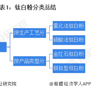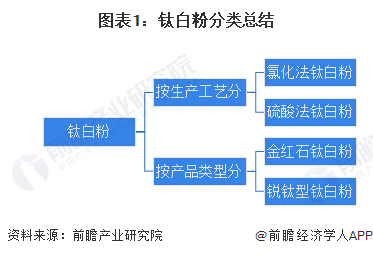 钛白粉产品按生产工艺分可以分为氯化法钛白粉和硫酸法钛白粉,按产品类型大致可以分为金红石钛白粉和锐钛型钛白粉两大类产品。