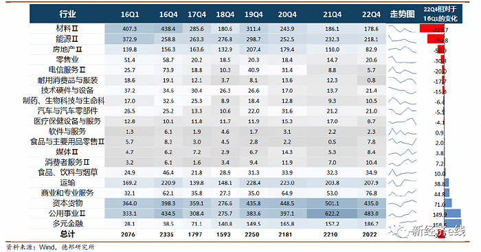就2022年全年基金持仓变化及2022Q4持债结构而言,债券基金在“赎回潮”影响下大幅减持债券,其中信用债减持力度要大于利率债。如产业债就被大幅减持,高等级品种被减持更明显,集中于公共事业、资本货物、能源等行业。