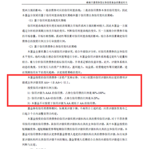 兴证全球恒远强调,其投资于信用评级为AA+级的信用资产占所有信用资产的比例为0%-20%,投资于信用评级为AAA 级的信用资产占所有信用资产的比例为80%-100%。