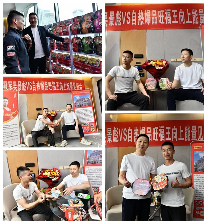 5年后的2023年第108届成都春季糖酒会,世界冠军再度现身旺福王食品糖酒会招商会现场,举行“世界冠军吴景彪VS自热爆品旺福王向上能量见面会”,共同讲述运动、能量与美食的内在联系。