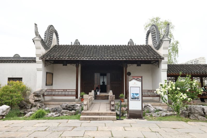 除上述几座民宅外,浦东牡丹园还有一座2012年新建的古风建筑,1402平方米的园区管理用房华堂楼。这座房子是传统江南建筑风格,黛瓦白壁马头墙,有中式传统风韵也有现代装饰布置,提供会议室、贵宾室等功能。这里还挂牌了外国人社会融合服务站。外高桥集团、森兰商运还在此处策划了“真镜文缘——高行八百年文脉与杨维桢《真镜庵募缘疏》书迹展”,向游客介绍高行镇的历史文化。