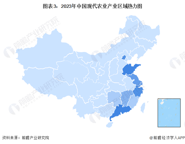 现代农业行业产业链区域热力地图:布局区域较为分散