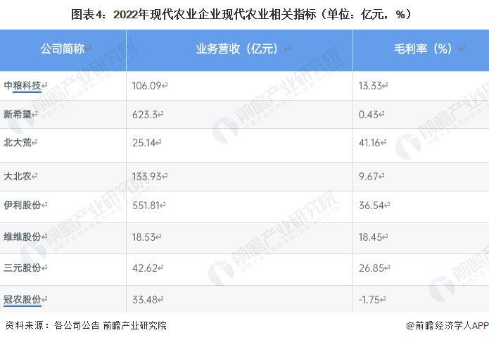 现代农业行业代表性企业业绩对比