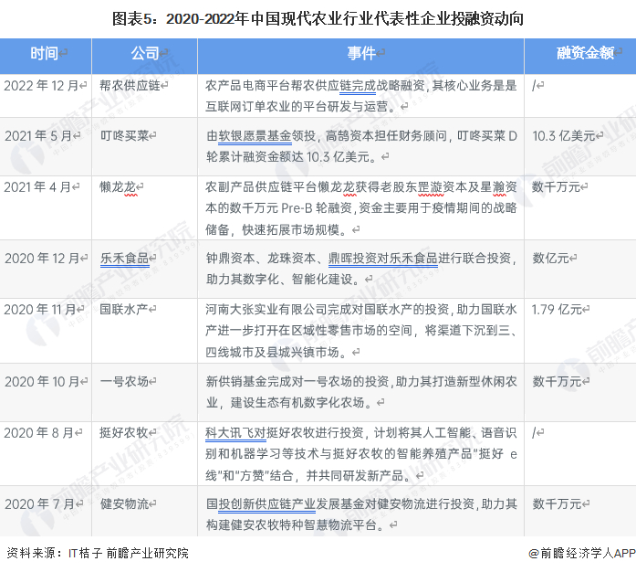 现代农业行业代表性企业最新投融资动向