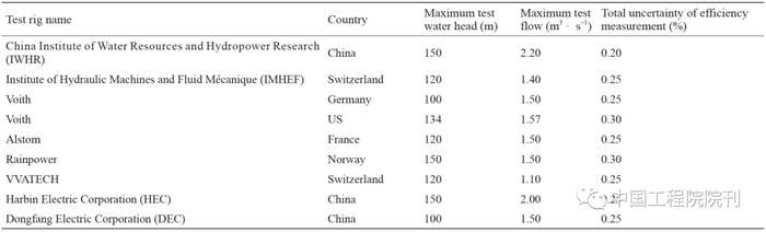 中国建设了高精度水力机械模型试验台,表7列出了试验台与世界各国的比较。试验台建设为开发优秀水力机械模型打下了基础,同时进行了大型水电站、抽水蓄能电站同台对比试验,为科学评标提供平台。