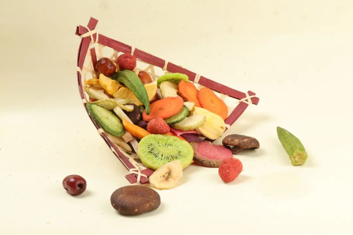 果蔬脆富含维生素、矿物质、纤维等多种营养成分,健康安全的维持了果蔬纯天然的色泽、营养和口味。