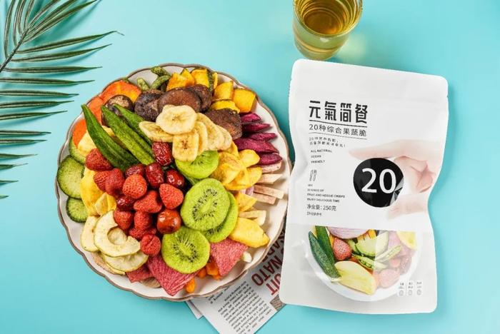 这款果蔬脆在保留大部分果蔬的营养时,解决了果蔬口感差的缺点,再难吃的果蔬也变得像零食一样让人喜欢。