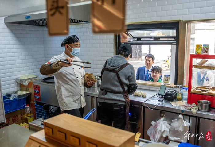 “当时我们跑了一天,看了三家汉庭酒店,这家临街的最合适,地段也不错。”王永新说,原计划经过三五个月装修后新店就能开出来,不料后来遇上疫情暴发等情况,装修断断续续进行了一年多。直到今年3月中旬,这家小店才终于拿到营业执照迎客。小店临街对外营业,内侧窗口与汉庭酒店的餐厅连成一体,住店客人也能随时吃上香喷喷的葱油饼。