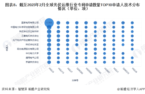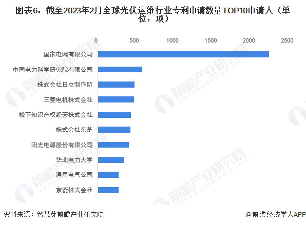 2、全球光伏运维行业专利主要申请人竞争格局
