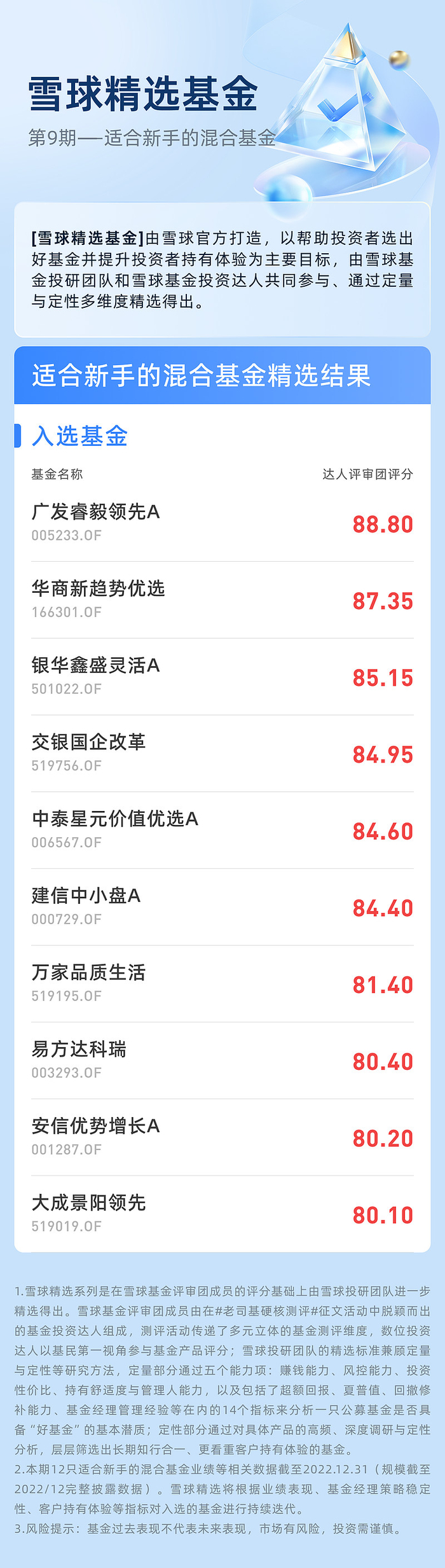 雪球精选基金第9期——10只适合新手的混合基金入选,来看看有没有你的中意基!