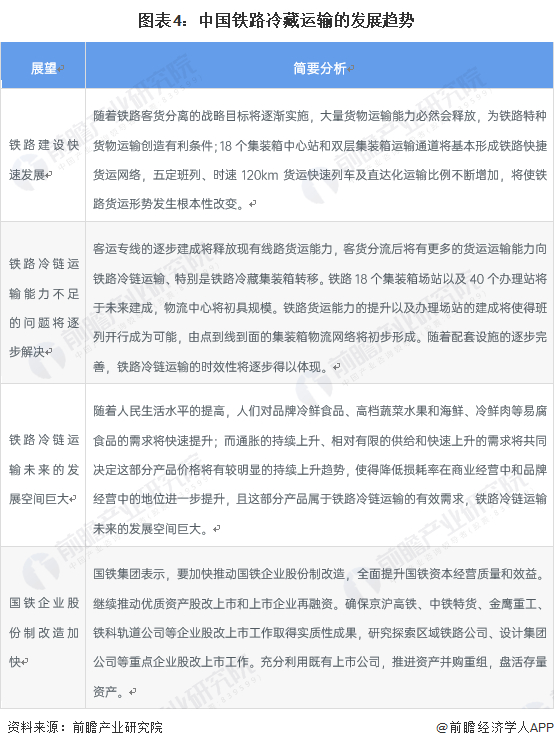 随着我国铁路建设快速发展,铁路冷链运输能力不足的问题将逐步解决,中国铁路冷链物流行业的未来的发展空间巨大,。