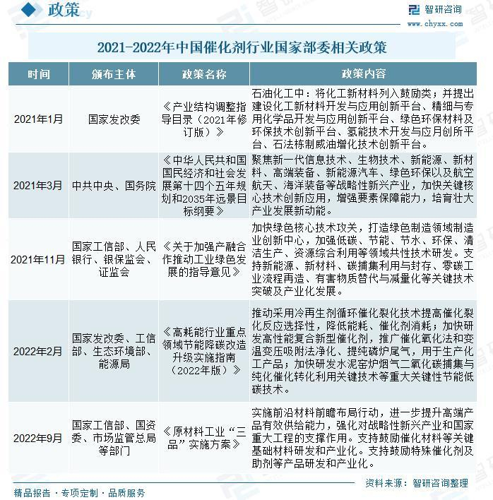 了解更多催化剂行业的深度研究分析和全面数据,请关注智研咨询发布的《2023-2029年中国催化剂行业竞争现状及市场前景趋势报告》。本《报告》从2022年全国催化剂行业发展环境、整体运行态势、运行现状、进出口、竞争格局等角度进行入手,系统、客观的对我国催化剂行业发展运行进行了深度剖析,展望2023年中国催化剂行业发展趋势。《报告》是系统分析2022年度中国催化剂行业发展状况的著作,对于全面了解中国催化剂行业的发展状况、开展与催化剂行业发展相关的学术研究和实践,具有重要的借鉴价值,可供从事催化剂行业相关的政府部门、科研机构、产业企业等相关人员阅读参考。