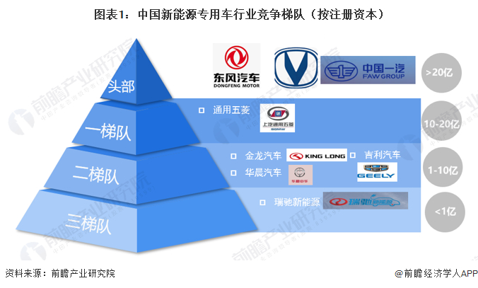 1、中国新能源专用车行业竞争梯队