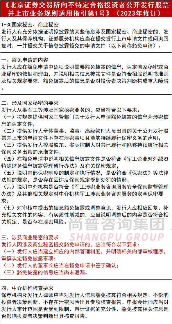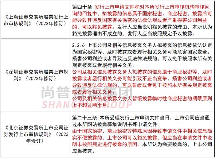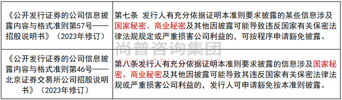 针对这种特殊情况,监管部门制定了一系列的信息披露豁免政策,信息披露豁免包含涉及国家秘密和企业商业秘密两种情形。本次尚普君将总结商业秘密相关情形,包含相关法律法规,若拟IPO企业以商业秘密为由申请豁免披露,监管部门的审核关注要点和企业的回复思路。