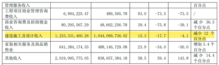 第四,建造施工及设计收入12.33亿元,占比9%。