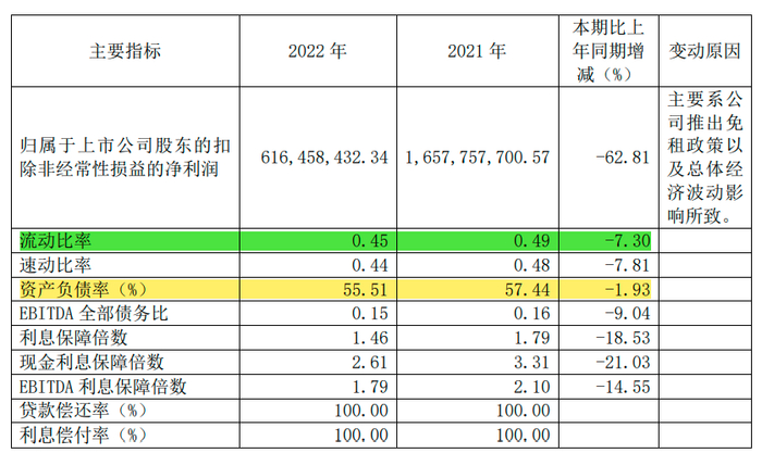 不过,2022年其资产负债率为55.51%,总体降速并不明显,同比仅减少1.93%。